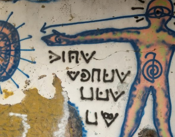 Can you decipher this encrypted graffiti that was found near Rome, Italy? The encryption method used looks like a Pigpen variant.