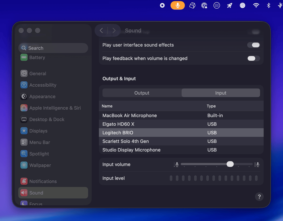 Unclack uses macOS system controls to mute input coming from your default microphone. Any mic.