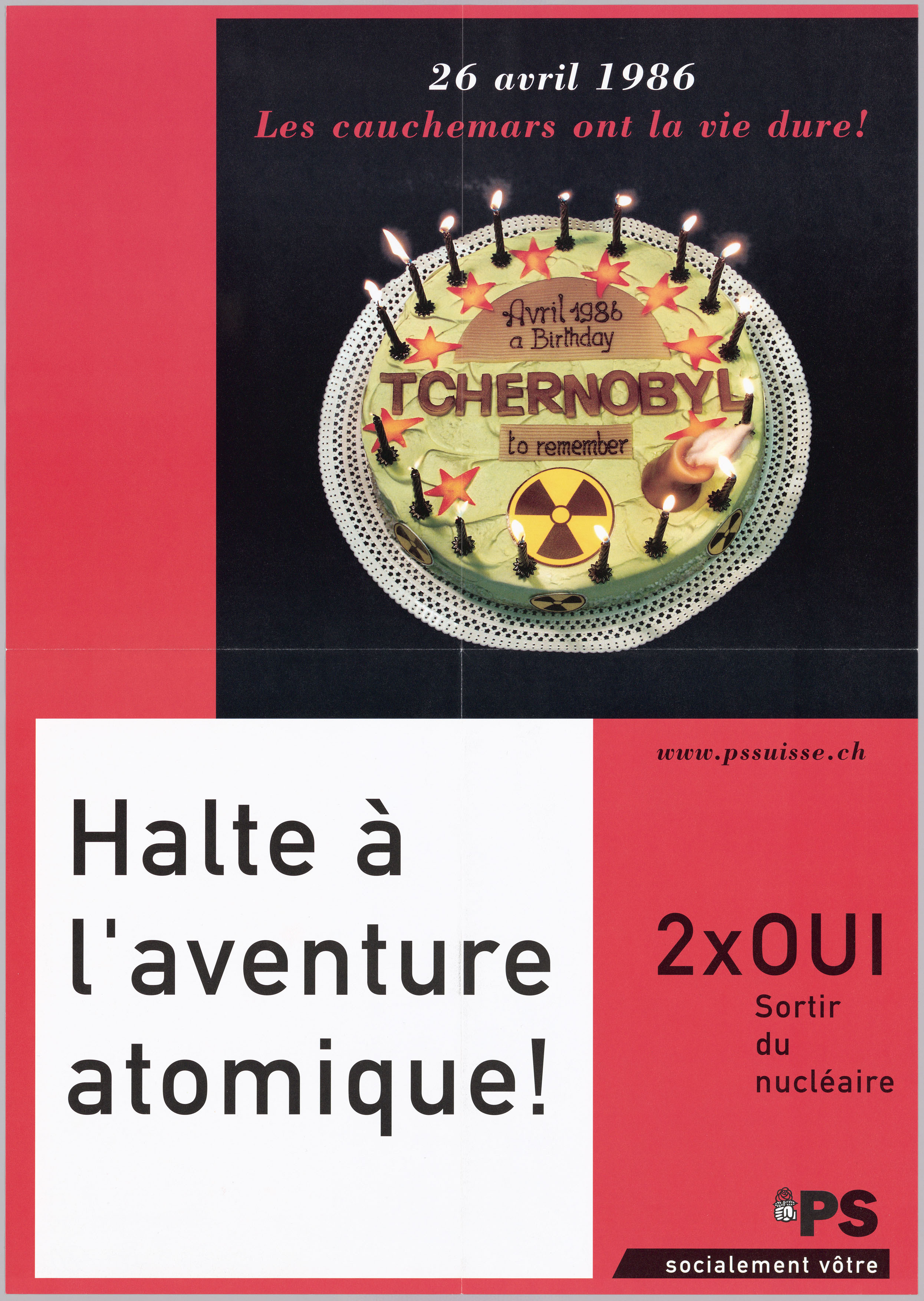 Zu Beginn der 80er Jahre hatte die Anti-Atom-Bewegung an Schwung verloren. 1984 erzielte die Eidgenössische Volksinitiative „für eine Zukunft ohne weitere Atomkraftwerke“ noch 45 Prozent Zustimmung. Nach der Reaktorkatastrophe von Tschernobyl demonstrierten dann aber 30‘000 Menschen vor dem Atomkraftwerk Gösgen und zum ersten Jahrestag des GAUs gab es eine Grossdemonstration auf dem Bundesplatz. 1988 beerdigten die AKW-BefürworterInnen im Parlament unter Federführung von Nationalrat Blocher das Kaiseraugst-Projekt, das bis zu diesem Zeitpunkt 1,3 Milliarden Franken verschlungen hatte, selber. Und am Abstimmungssonntag vom September 1990 manifestierte sich das anhaltende Unbehagen der Bevölkerung gegenüber der Atomkraft erneut: Während die Volksinitiative für einen Atomausstieg mit einer Zustimmung von 47,1 Prozent knapp scheiterte, sagten 54,5 Prozent Ja zu einem zehnjährigen Moratorium im Atomkraftwerkbau. Gleichzeitig passierte die Vorlage für einen Energieartikel in der Bundesverfassung mit 71,1 Prozent Zustimmung und Mehrheiten in sämtlichen Kantonen die Volksabstimmung mit Bravour. Durch das Moratorium verlor die Atomdebatte in der Folge stark an Publizität. 2003 scheiterten die zwei atomkritischen Volksinitiativen „MoratoriumPlus“ (58,4 Prozent Nein) und „Strom ohne Atom“ (66,3 Prozent Nein) deutlich. Erst mit der Atomkatastrophe von Fukushima im März 2011 kam das Thema schlagartig wieder aufs Tapet und führte zu energiestrategischen Diskussionen, die bis heute anhalten.