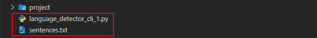 In this section, we will build the language detector command line tool using one package at a time. So inside the virtual environment, create two files and name them language_detector_cli_1.py and sentences.txt respectively: