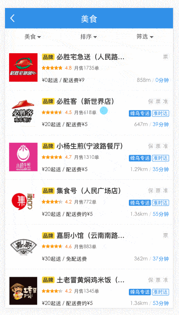 - 根据距离、销量、评分、特色菜、配送方式等进行排序和筛选 -- 完成