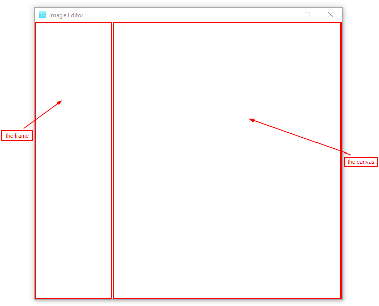 If you run the program you won’t see any frame or Canvas but here is how they are taking up space in the main window: